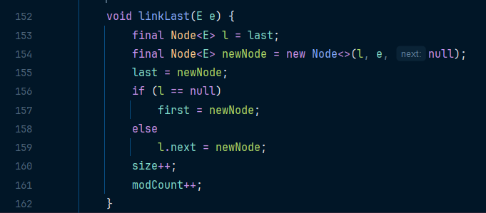 LinkedList 의 내부 코드를 보니까 값과 포인터로 이루어져있다는 추상적 설명이 조금 가시적으로 느껴졌다