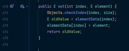 아래는 ArrayList의 set() 메소드이다