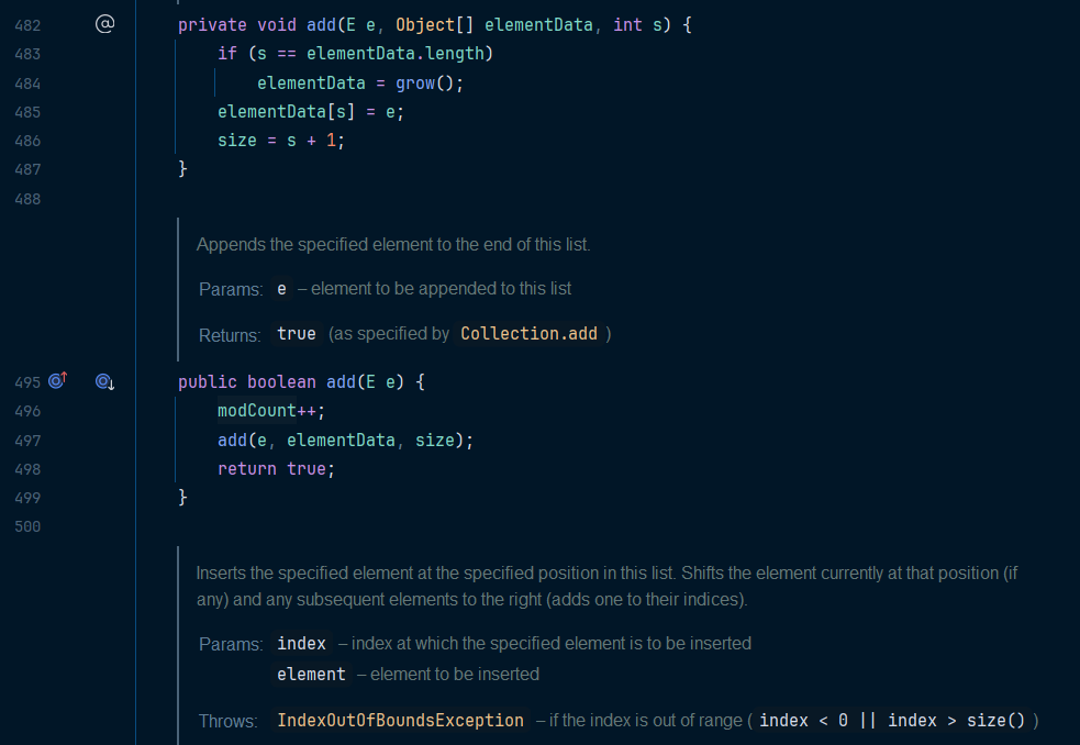 아래는 ArrayList 의 add() 메소드 내부 코드이다