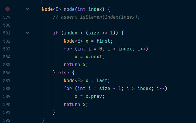 이 메소드를 보면 내부적으로 for 문을 돌려(순회) 인덱스값의 노드를 반환한다