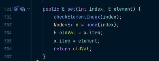 아래는 LinkedList의 set() 메소드이다