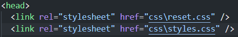 위 사진은 같은 폴더 내의 css 폴더 내의 reset.css 파일과 styles.css 파일을 불러온 것이다